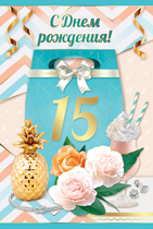 14.009.00 Открытка "15 лет. Ананас и цветы" Формат А5