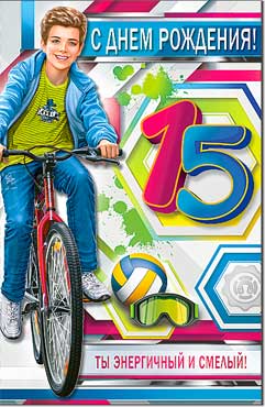 23-3567-ТК Открытка "15 лет.Мальчик на велосипеде" Формат А5