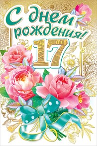 060.249 Открытка "17 лет.Цветы" Тиснение золотом.Формат А5