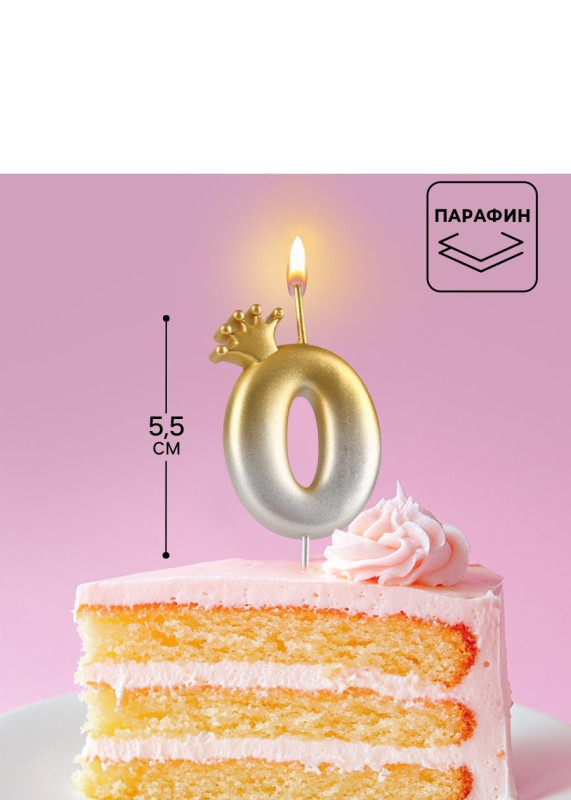 10873672 (5680) Свеча в торт "Цифра 0 Корона золотая с серебром" на шпажке. Высота 5 см.