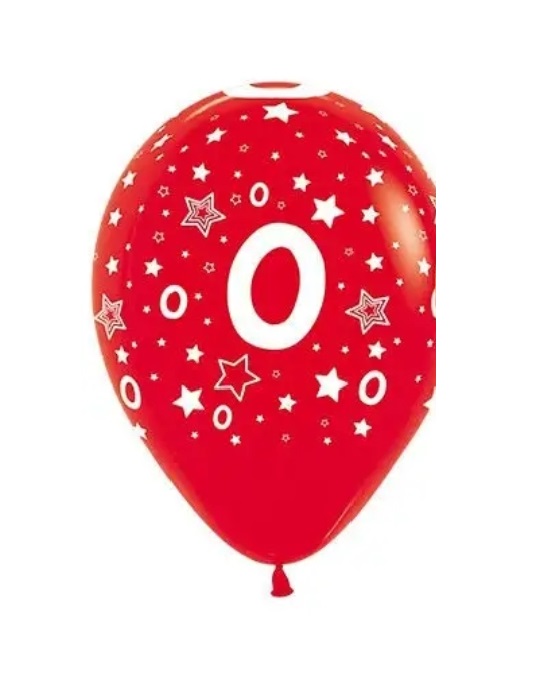SE 612100/1 Красный 5-сторонний шарик "Цифра 0: Звезды" D 30 см. (с гелием)