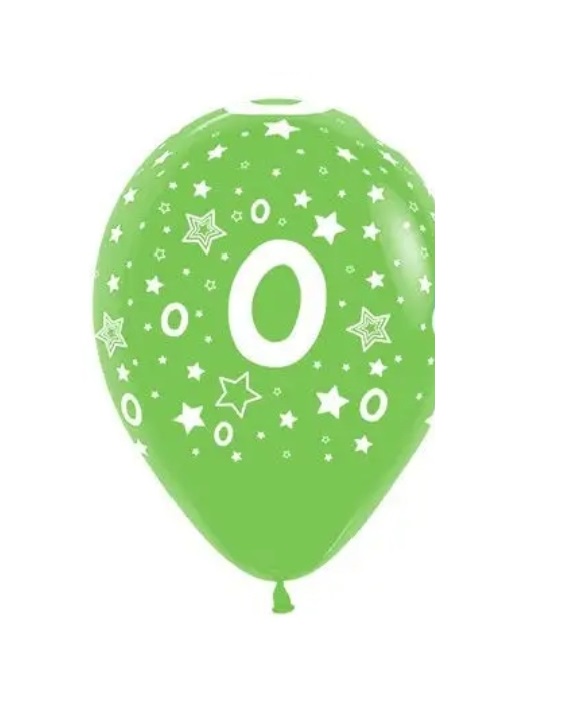 SE 612100/2 Салатовый 5-сторонний шарик "Цифра 0: Звезды" D 30 см. (с гелием)