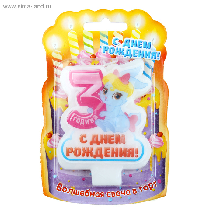 1020595 Свеча для торта "Цифра 3.С Днем рождения.Зайка". Серия Зверюшки
