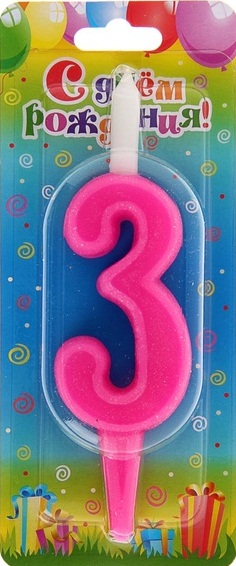 1220071 (3103) Свеча для торта "Цифра 3.Розовая"