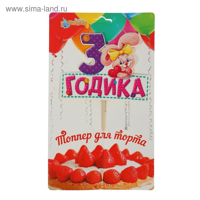 1490964 Топпер в торт "3 годика.Зайка" для девочек