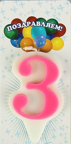 1506758 Свеча в торт "Цифра 3.Розовая волна на белом"