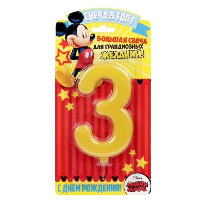 1689413 Свеча Гигант в торт для мальчика "3 годика.Микки Маус" Высота 14 см.