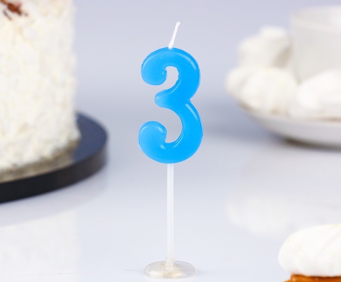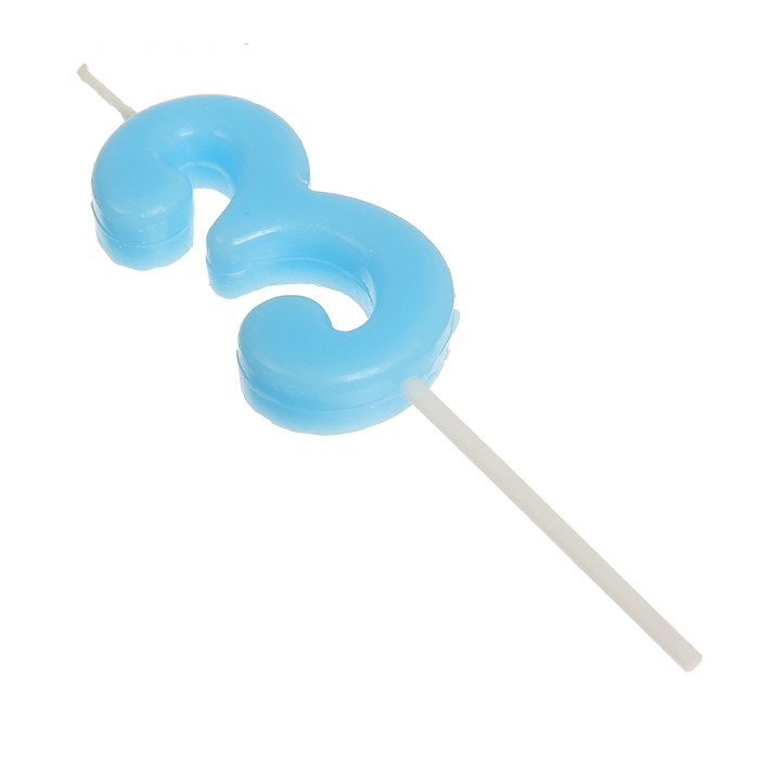 2385810 Свеча в торт "Цифра 3.Голубая" на палочке. Высота свечи 4,5 см.