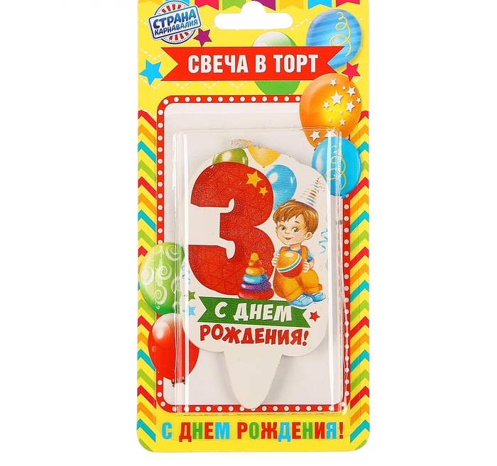 3409367 Свеча в торт "Цифра 3. С Днем рождения!" для мальчика