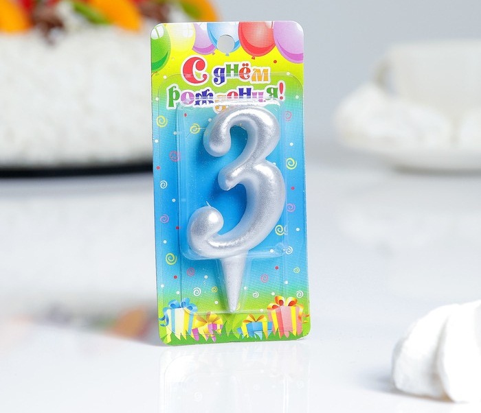 3938139 (3133) Свеча в торт "Цифра 3.Серебряный металлик" Высота 7 см.