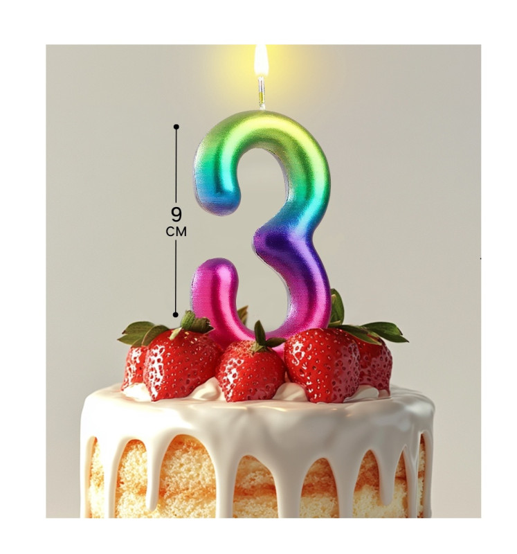 5311070 Радужная свеча ГИГАНТ в торт "Цифра 3" Высота 9 см.