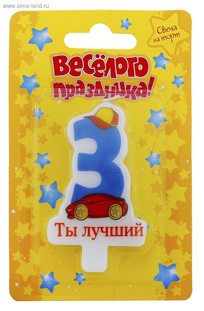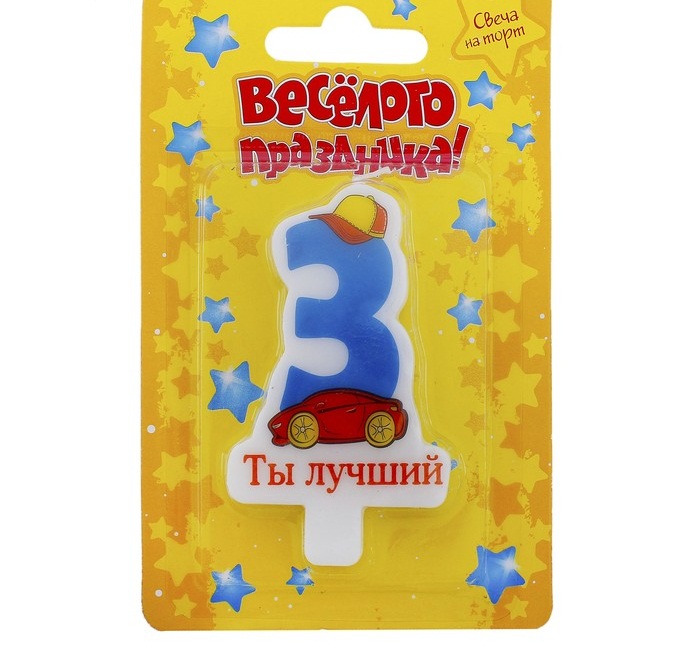 670639 Свеча в торт "Цифра 3. Ты лучший" для мальчика