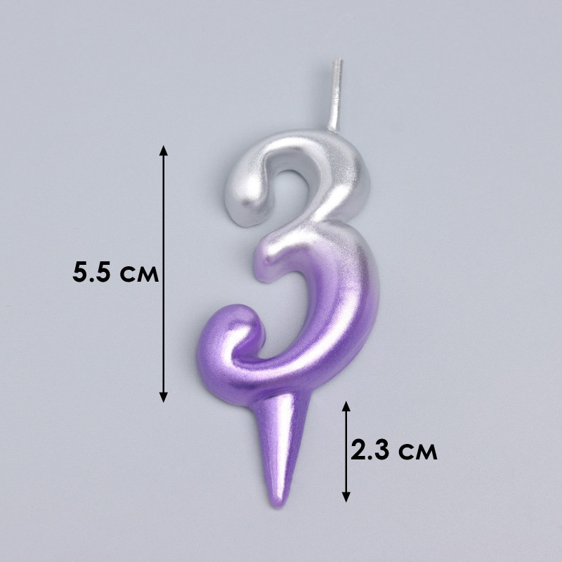 9484548 (4473) Свеча в торт "Цифра 3" Высота 5,5 см. Цвет сирень/ серебро