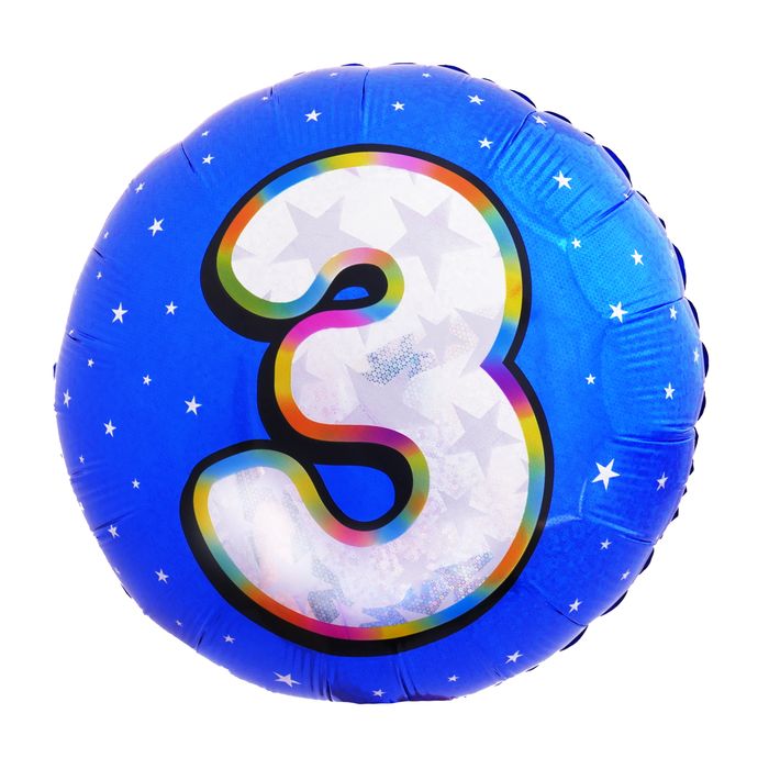 Ч 00013/С Фольгированный круг "Цифра 3. Синий перламутр" Диаметр 45 см.