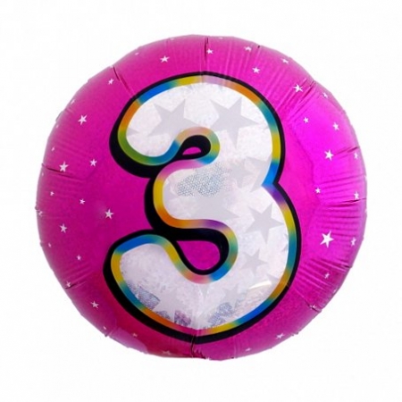 Ч 18193/Р Фольгированный круг "Цифра 3.Розовый перламутр" Диаметр 45 см.Китай