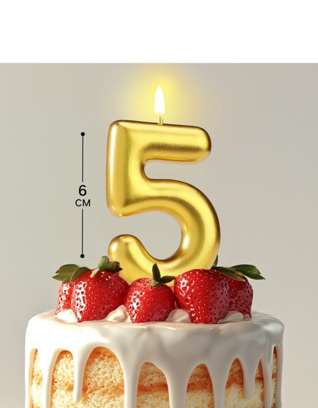 10133645 Свеча в торт "Цифра 5 Золото" на шпажке. Высота 5,5 см.