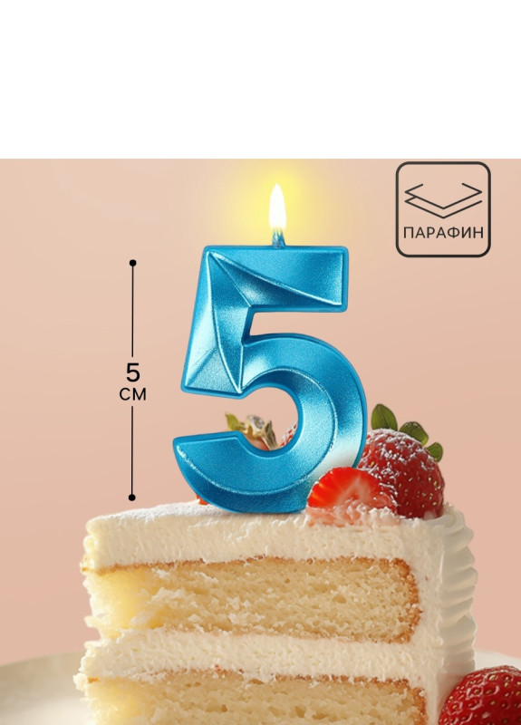 10766787 Свеча в торт "Цифра 5 Голубой металлик" на шпажке Высота 5 см.