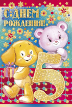 13.240.00 Открытка "5 лет.Мишка и щенок" Формат А5