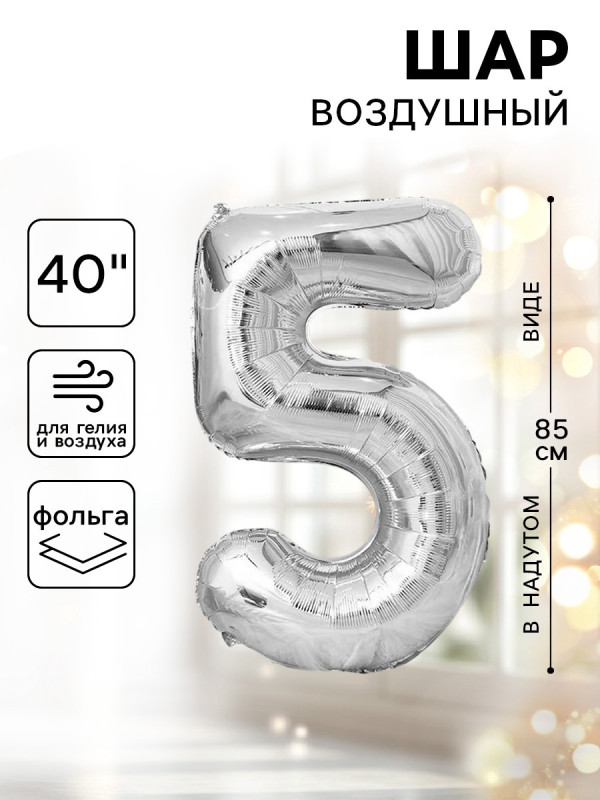 1386218 Серебряная фольгированная "Цифра 5" Высота 85 см.
