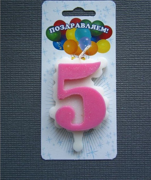 1506766 Свеча в торт "Цифра 5.Розовое облачко"