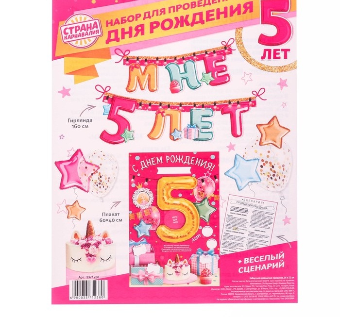 3371238 Набор для девочки"Мне 5 лет" для проведения детского праздника