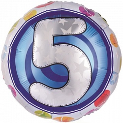 Ч 13125 Фольгированный круг "Цифра 5.Красочная" Диаметр 45 см.Китай