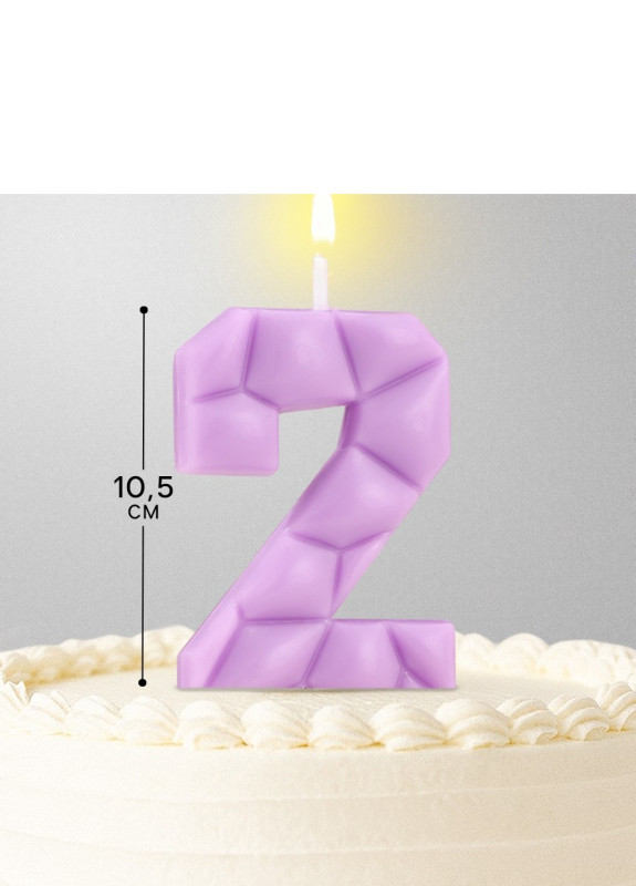 10603311 Свеча в торт "Цифра 2 Сиреневая" на шпажке Высота 5 см.
