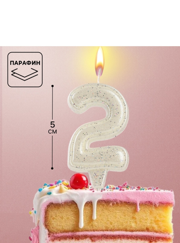 10870117 Свеча в торт "Цифра 2 Жемчужный перламутр" на шпажке Высота 6 см.