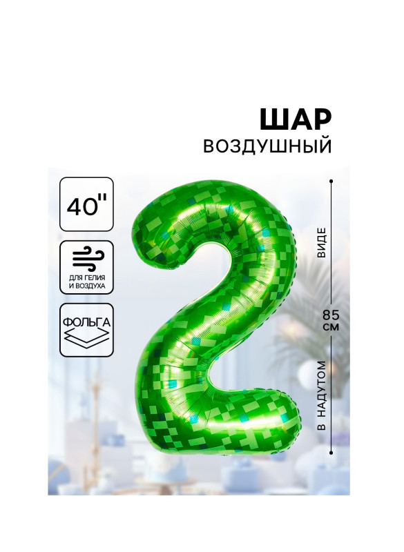 10919684 (ДБ 26902) Зеленая в клетку фольгированная "Цифра 2" Высота 85 см.