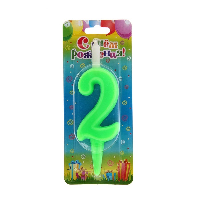 1220070 (3110) Свеча в торт "Цифра 2.Салатовая"