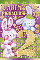 13.237.00 Открытка " 2 годика.Зайки с телефонами" Формат А5