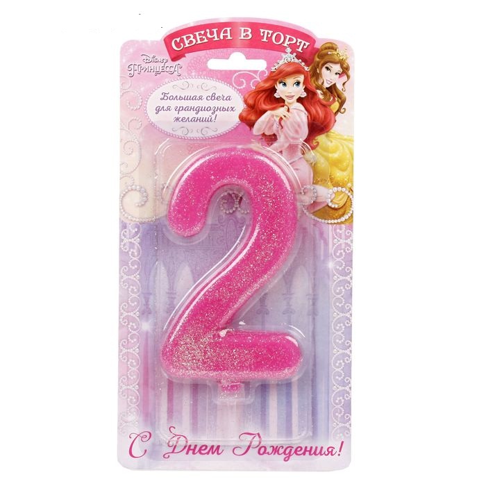 1689417 Свеча Гигант в торт для девочки "2 годика.Принцессы" Высота 14 см.