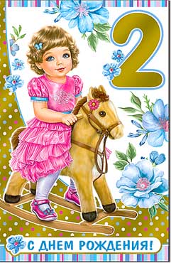 23-1604-КМ Открытка " 2 годика. Девочка на лошадке" Формат А5