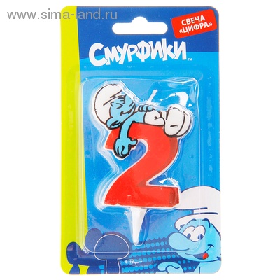 303067 Свеча для торта "Цифра 2. Смурфики"
