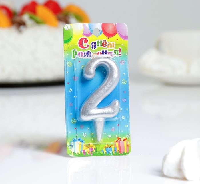 3938138 (3132) Свеча в торт "Цифра 2.Серебряный металлик" Высота 7 см.