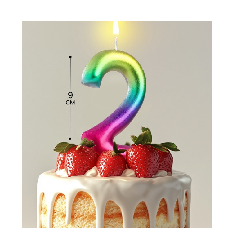 5311069 Радужная свеча ГИГАНТ в торт "Цифра 2" Высота 9 см.