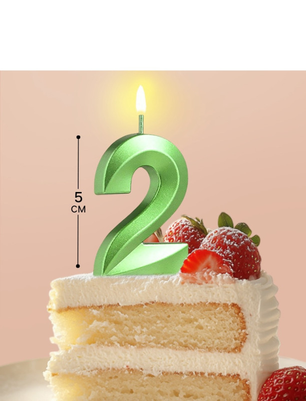 5572736 Свеча в торт "Цифра 2 Зеленый металлик" на шпажке. Высота 5 см.