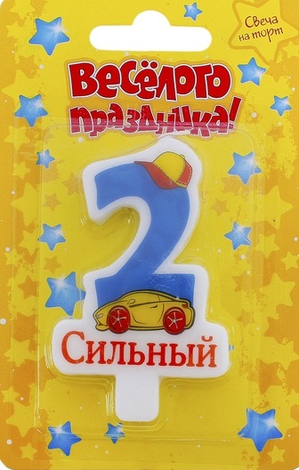 670638 Свеча для торта "Цифра 2. Сильный" для мальчика
