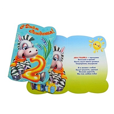 787137 Открытка " 2 годика.С Днем рождения! Зебра" Формат А5