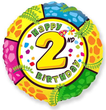 БР 401575/2 Фольгированный круг "Цифра 2.Happy Birthday!" Диаметр 45 см.