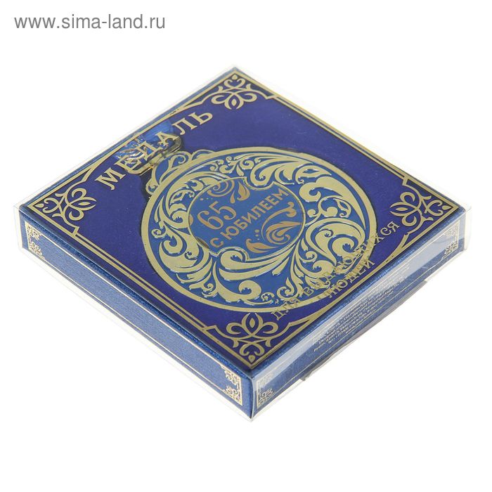 916570 Медаль "С Юбилеем 65 лет!" синяя на атласной ленте в подар.коробке