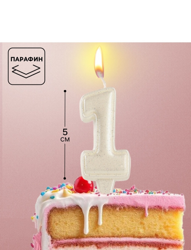 10870116 Свеча в торт "Цифра 1 Жемчужный перламутр" на шпажке Высота 6 см.