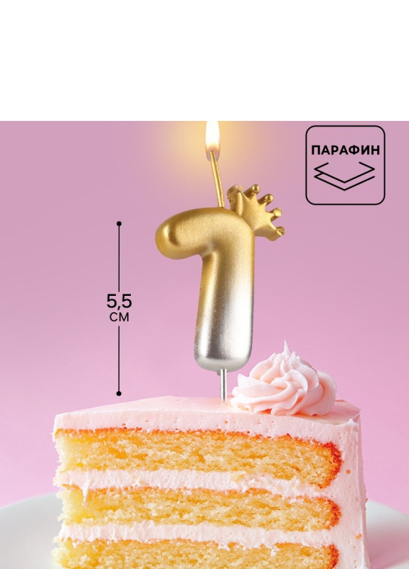 10873673 (5681) Свеча в торт "Цифра 1 Корона золотая с серебром" на шпажке. Высота 5 см.