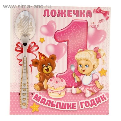1161004 Ложка с гравировкой " Малышке 1 годик" на открытке