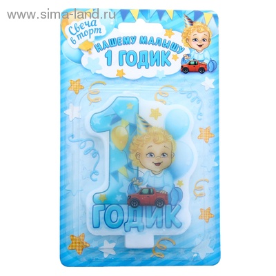 1169588 Свеча в торт "Нашему малышу 1 годик.Малыш с шариками"