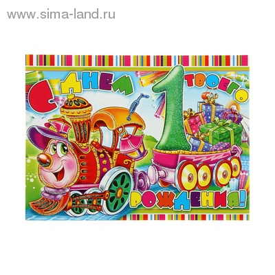 1263286 Открытка объемная "1 годик.С Днем рождения! Паровозик с подарками"