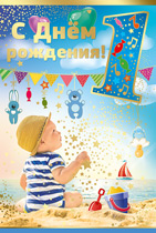 13.278.00 Открытка " 1 годик.Малыш на пляже" Формат А5
