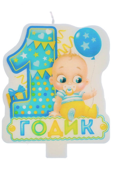 2434318 Свеча в торт "Мне 1 годик! Малыш с шариком" для мальчика