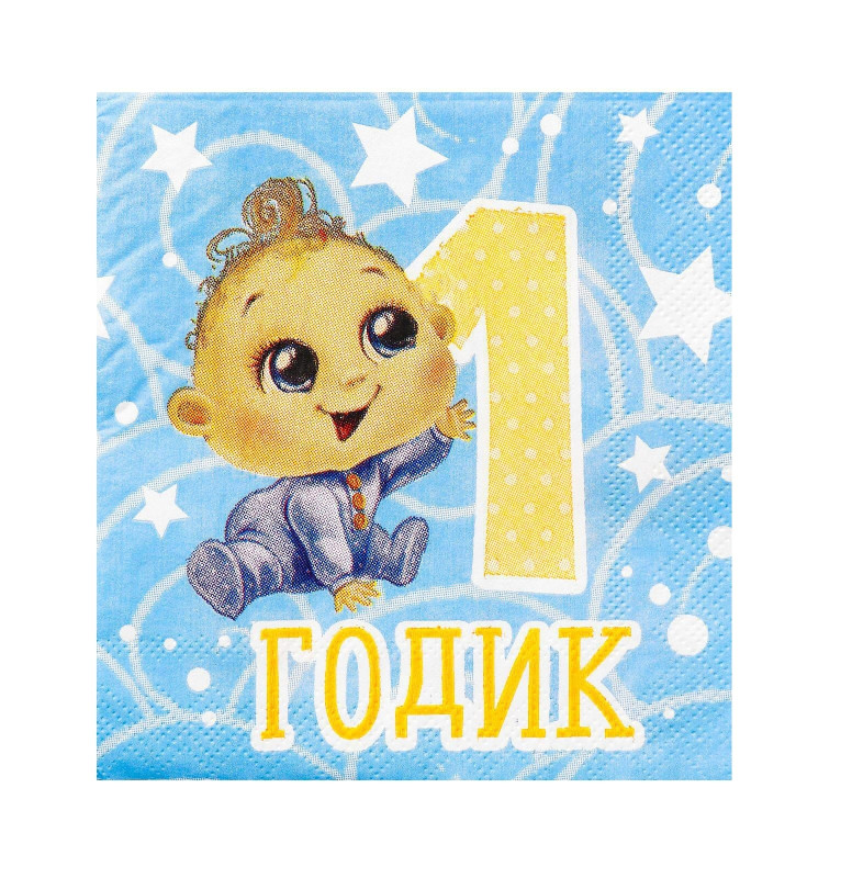 2453261 Набор голубых салфеток "1 годик" ( 20 шт.) Размер 25 х 25 см.