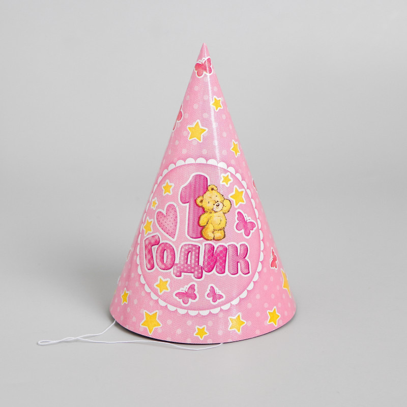 2865985/К Набор розовых колпаков "1 годик: Мишка" ( 6 шт.) для девочки